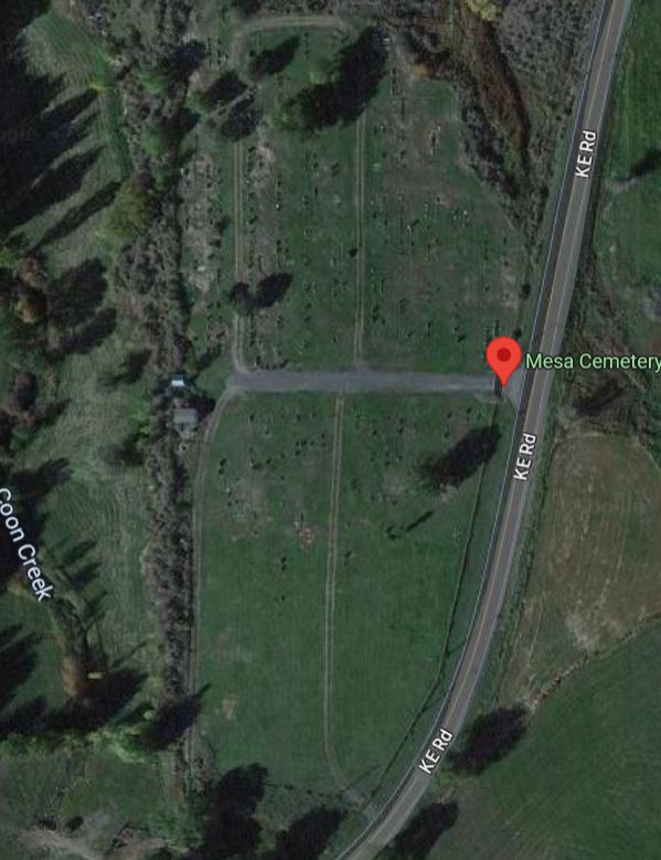 Directions: From Mesa, CO Post Office to Highway 65 & KE Road go East on KE Road about 1.1 mile to cemetery (entrance on East side of cemetery.